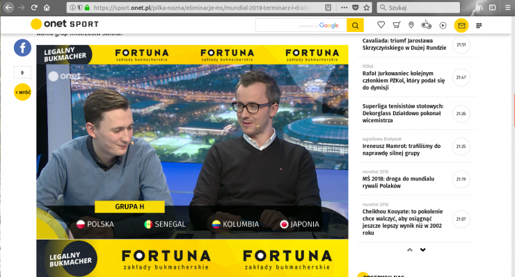 No i stało się. Losowanie Mistrzostw Świata jest już za nami. Moim zdaniem trafiliśmy na bardzo wyrównaną grupę. Na pewno nie można określić jej jako łatwą, zresztą, czy w dzisiejszych czasach są jeszcze zespoły, które można uważać za przysłowiowego „Kopciuszka”? W każdym razie Kolumbia, Japonia i Senegal i o awans nie będzie łatwo. Nie abym nie wierzył w Naszych… ale jestem też realistą i szanse każdego z tych zespołów oceniam na 25%. Po prostu serce jedno, a rozum to tonuje. Zresztą najgorsze co może być w tej grupie to kalendarz. Pierwsze spotkanie z Senegalem, a z tego co wypowiadali się różni eksperci, to drużyny z Afryki są najniebezpieczniejsze w pierwszym meczu… a dla Senegalu spotkanie z Polską jest właśnie pierwszym meczem. Patrząc na wypowiedzi ekspertów, byłbym bardziej zadowolony, gdybyśmy z Senegalem kończyli fazę grupową. Nie mniej wsłuchałem i wczytałem się w info podawane na onet.pl („screen” z boku)
