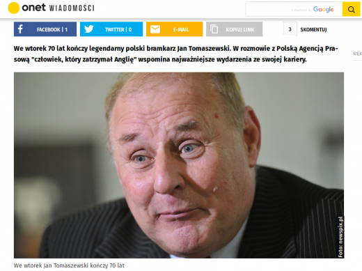 Nie ukrywam i nie będę ściemniał, że gdyby nie Onet, to bym pamiętał, bo wielki bramkarz, człowiek zasłużony dla polskiej piłki. Owszem, z całym szacunkiem. Wielki, w ogóle jeden z największych polskich bramkarzy, człowiek naprawdęContinue reading